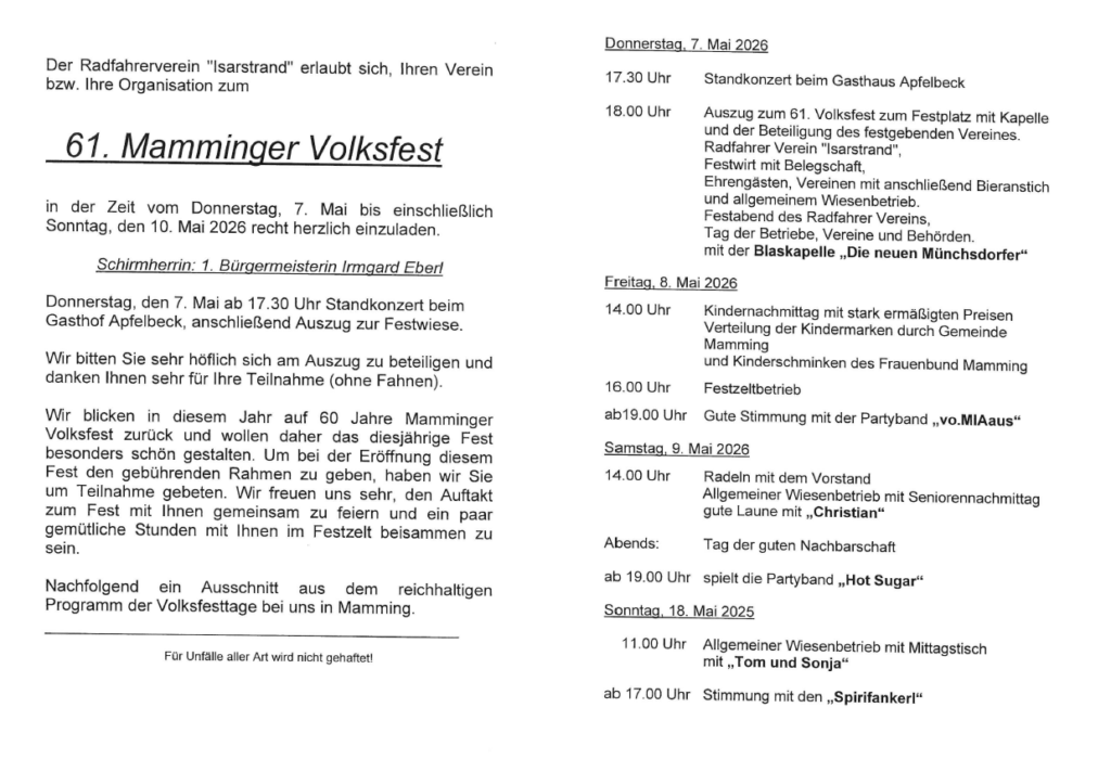 „Veranstaltungskalender Mamming 2026“