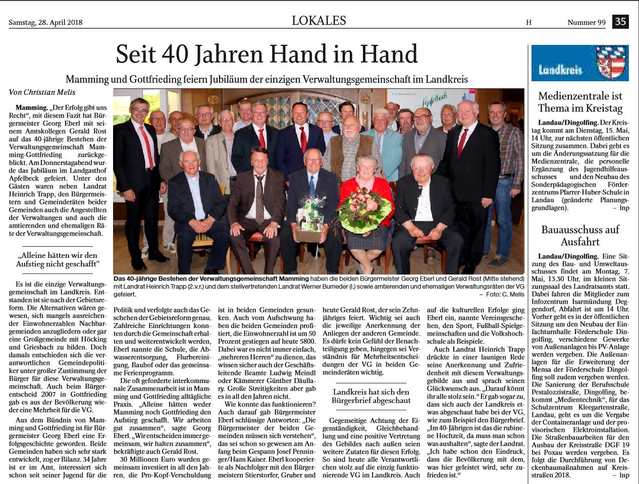 (13. Mai 2008; Dingolfinger Anzeiger) - 30 Jahre VG Mamming/Gottfrieding (PDF, 292,8 KB)