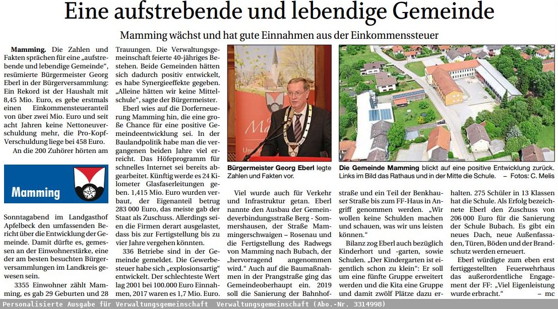 (30. Januar 2025; ) - Ein Rückblick auf das Jahr – Gemeinde Mamming stellt sich großen Aufgaben – Bürgermeisterin fasst 2024 zusammen (PDF, 139,5 KB)