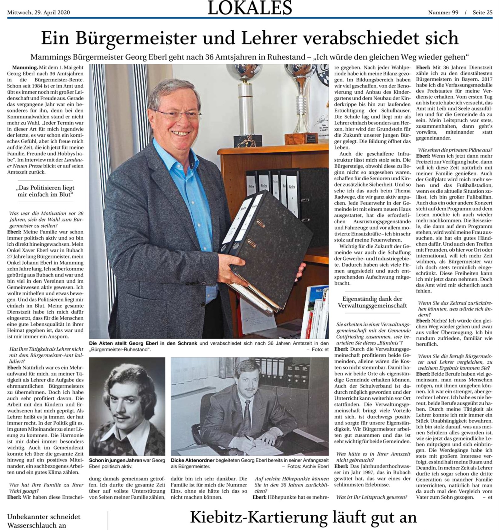 (15. Mai 2020; Dingolfinger Anzeiger) - Der Mamminger Gemeinderat ist arbeitsfähig – Bürgermeisterin Irmgard Eberl und die neuen Gemeinderäte wurden vereidigt (PDF, 316,0 KB)